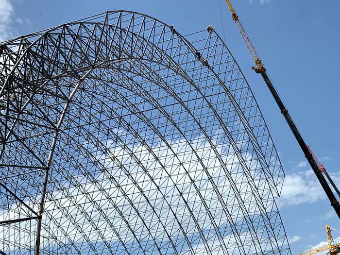 (2)网架加工前应对现场尺寸进行复测,确认无误后方可进行加工、安装;网架制作、运输、安装应遵守《空间网格结构技术规程》JGJ7-2010、《钢网架东兴螺栓球节点》JG/T 10-2009、《钢网架东兴螺栓球节点用高强度螺栓》 GB/T 16939-2016、《东兴钢结构东兴工程东兴施工规范》 GB50755-2012、《东兴钢结构东兴工程施工质量验收标准》 GB50205-2020。